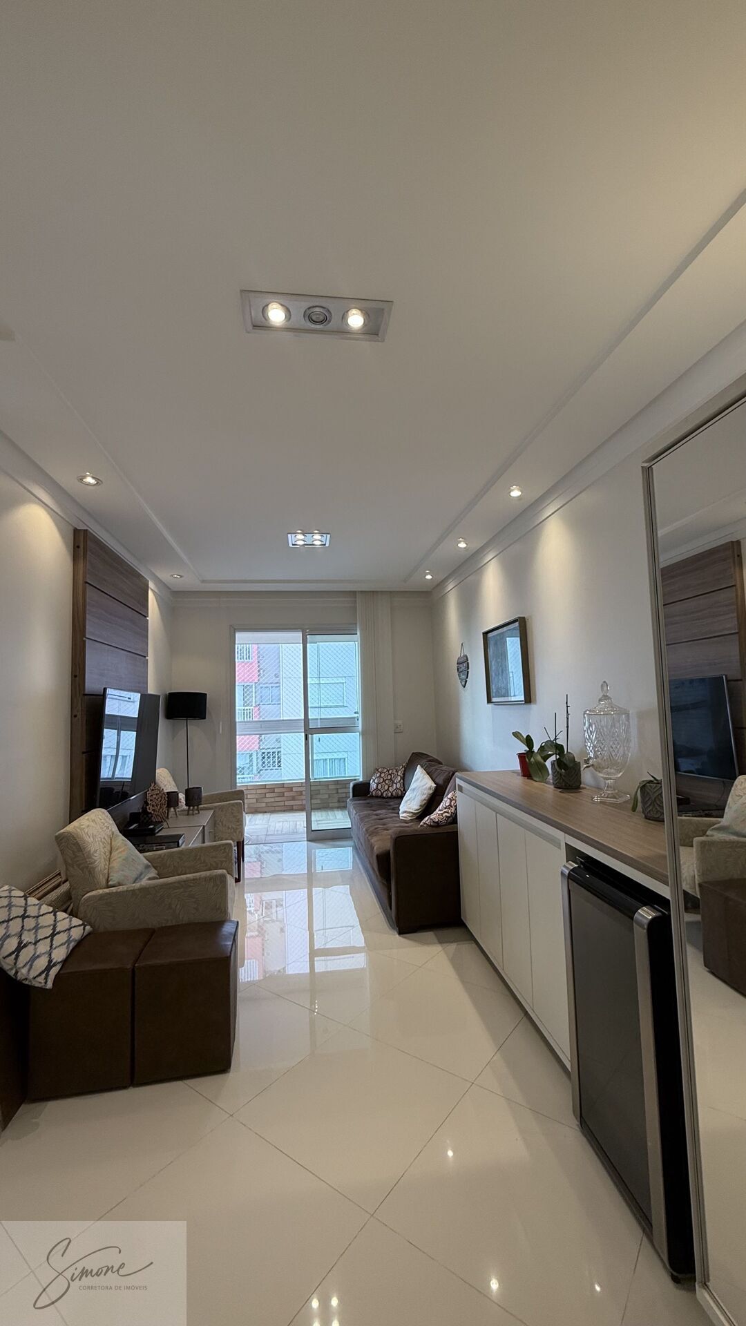 2 dormitórios com armarios e ar condicionado sendo 1 suíte e 1 banheiro, sala com varanda envidraçada, cozinha planejada, garagem