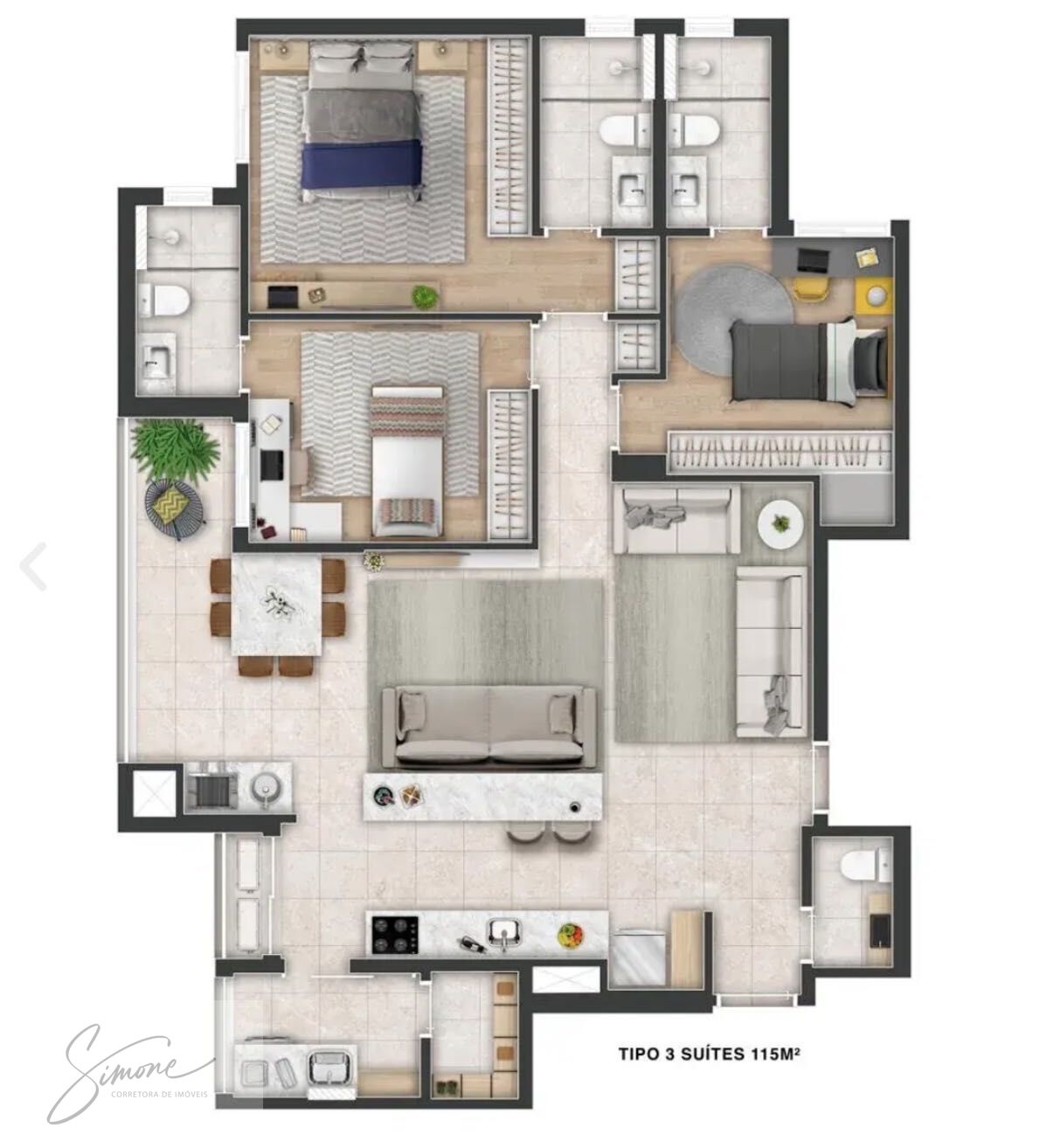 3 Dormitórios, sendo 3 suítes2 VagasGaragem Coberta1 Cozinha1 Lavabo1 Sala de jantar1 Sala de estar1 Área de serviço