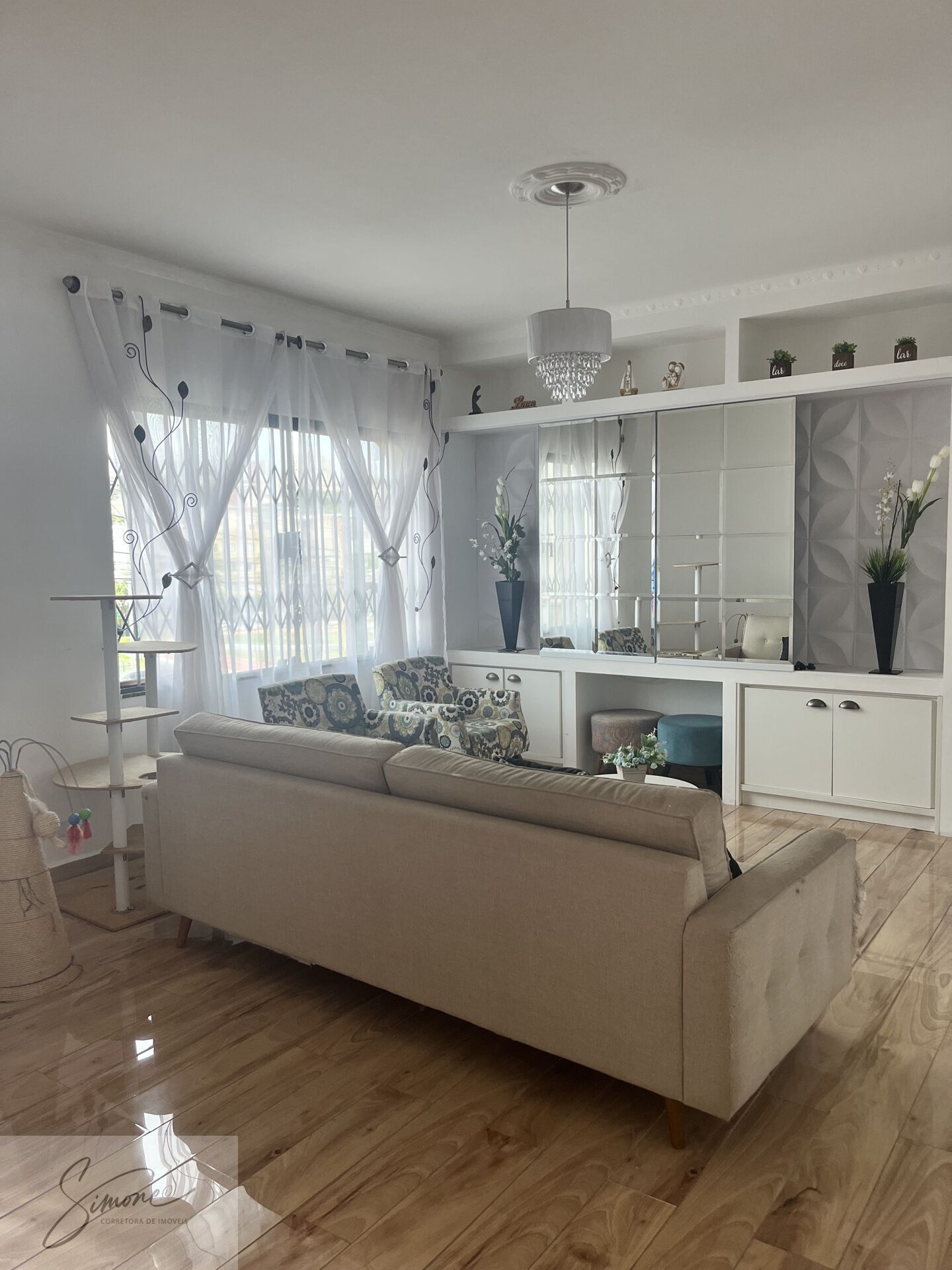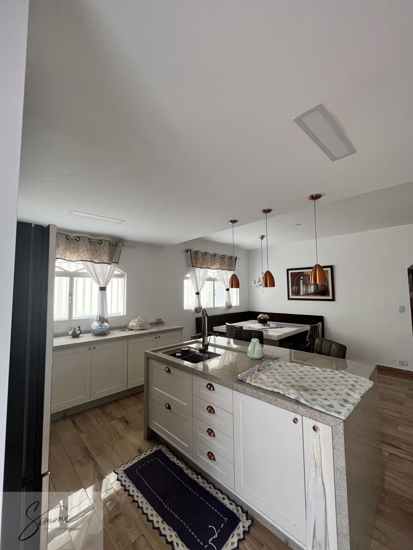 1 andar : sala de estar grande , lavabo e salade jantar com cozinha planejada com ilha e lavanderia e pequeno quintal com entrada principal e de serviço lateral