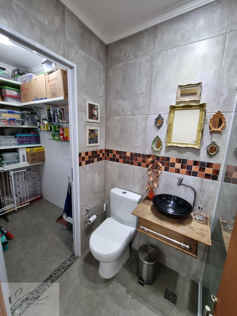 térreo com garagem para 4 carros, área gourmet com churrasqueira, 1 banheiro, área de acomodação para botijões de gás pois a casa tem distribuição do mesmo com aquecimento a gás.